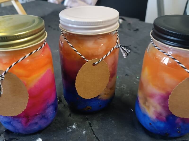 Création d'un système solaire, de nébuleuses pailletées, un très beau moment de partage et de nouveaux souvenirs crées.